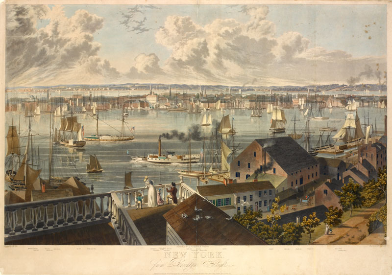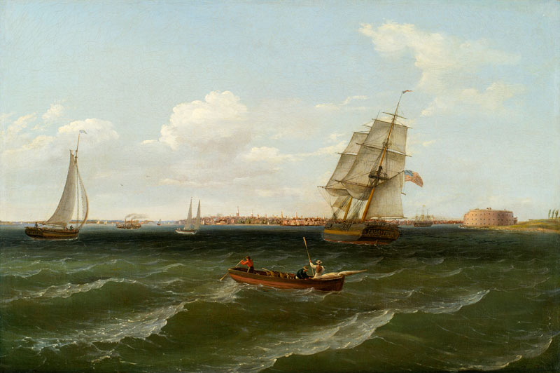 1831: Thomas Birch, a renowned artist of seascapes painted this oil of New York harbor. [New-York Historical Society]