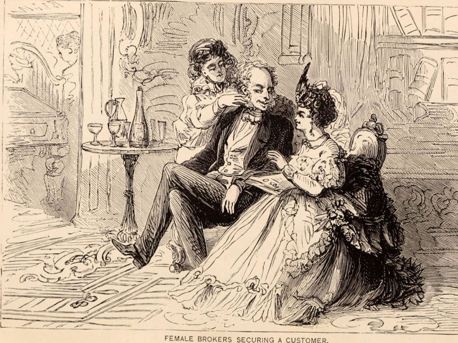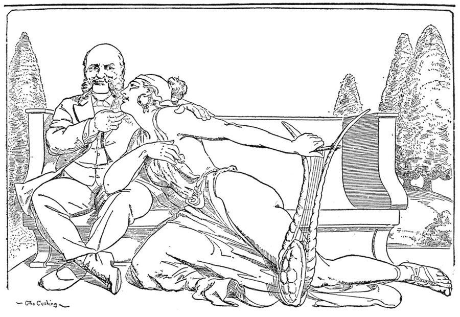 Tableau of the Beecher scandal with Lib Tilton in the lap of Henry Ward Beecher